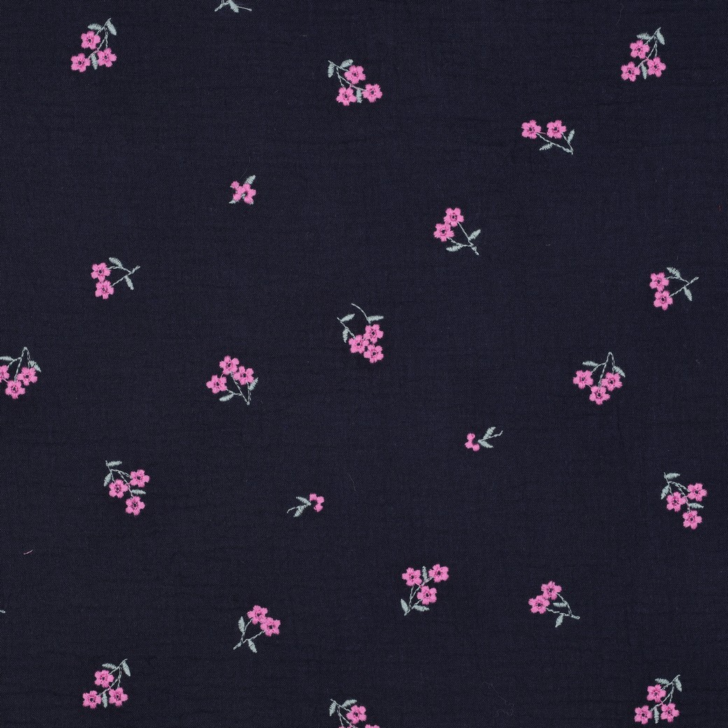Double Gauze Musselin: Gestickte Blumen Navy