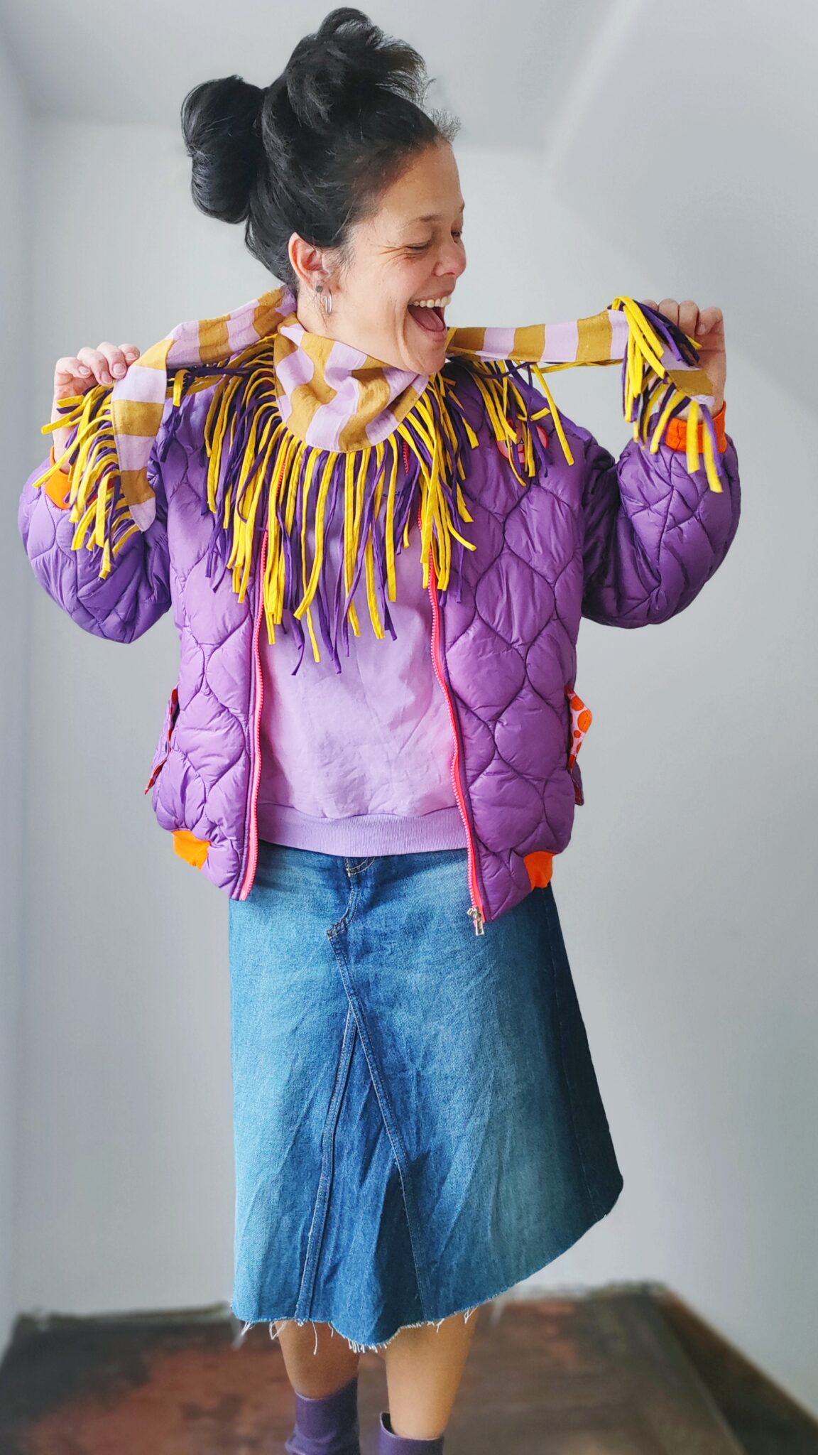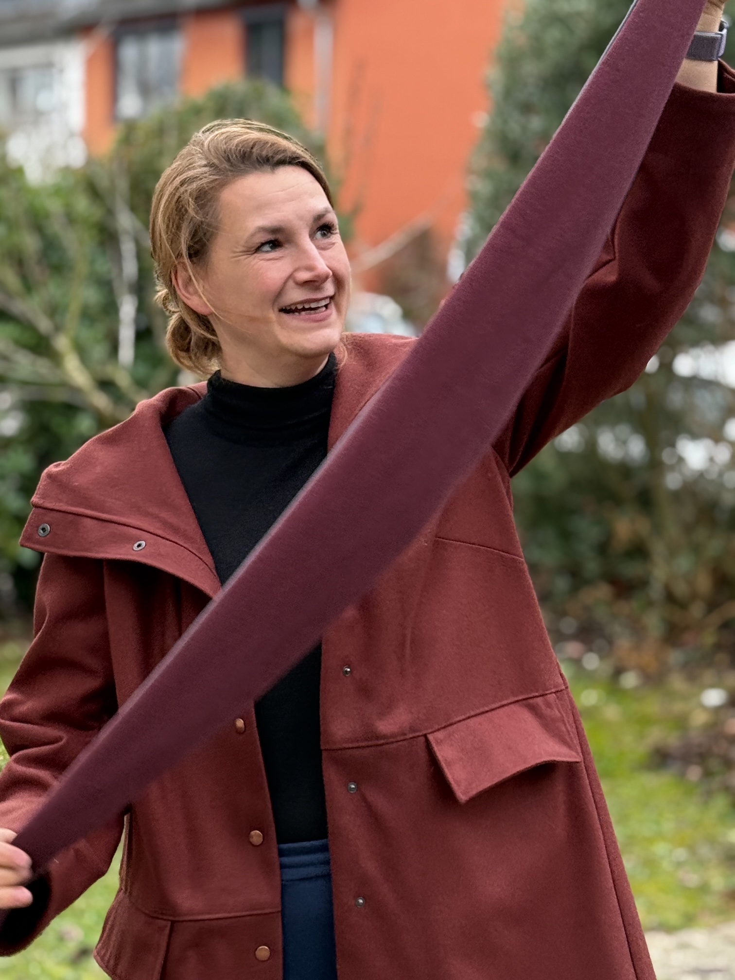 Der Elsbeth Scarf ist so aufgebaut, dass du als Anfängerin sofort loslegen kannst. Jeder Schritt ist übersichtlich erklärt, leicht verständlich und ohne komplizierte Techniken. Mit nur etwa 30 cm Stoff kannst du ein vielseitiges Halstuch nähen, das wunderbar für Alltag und Geschenkideen geeignet ist. Die drei Größen machen das E-Book flexibel – egal ob du ein kleines, elegantes Tuch möchtest oder eine etwas großzügigere Variante.