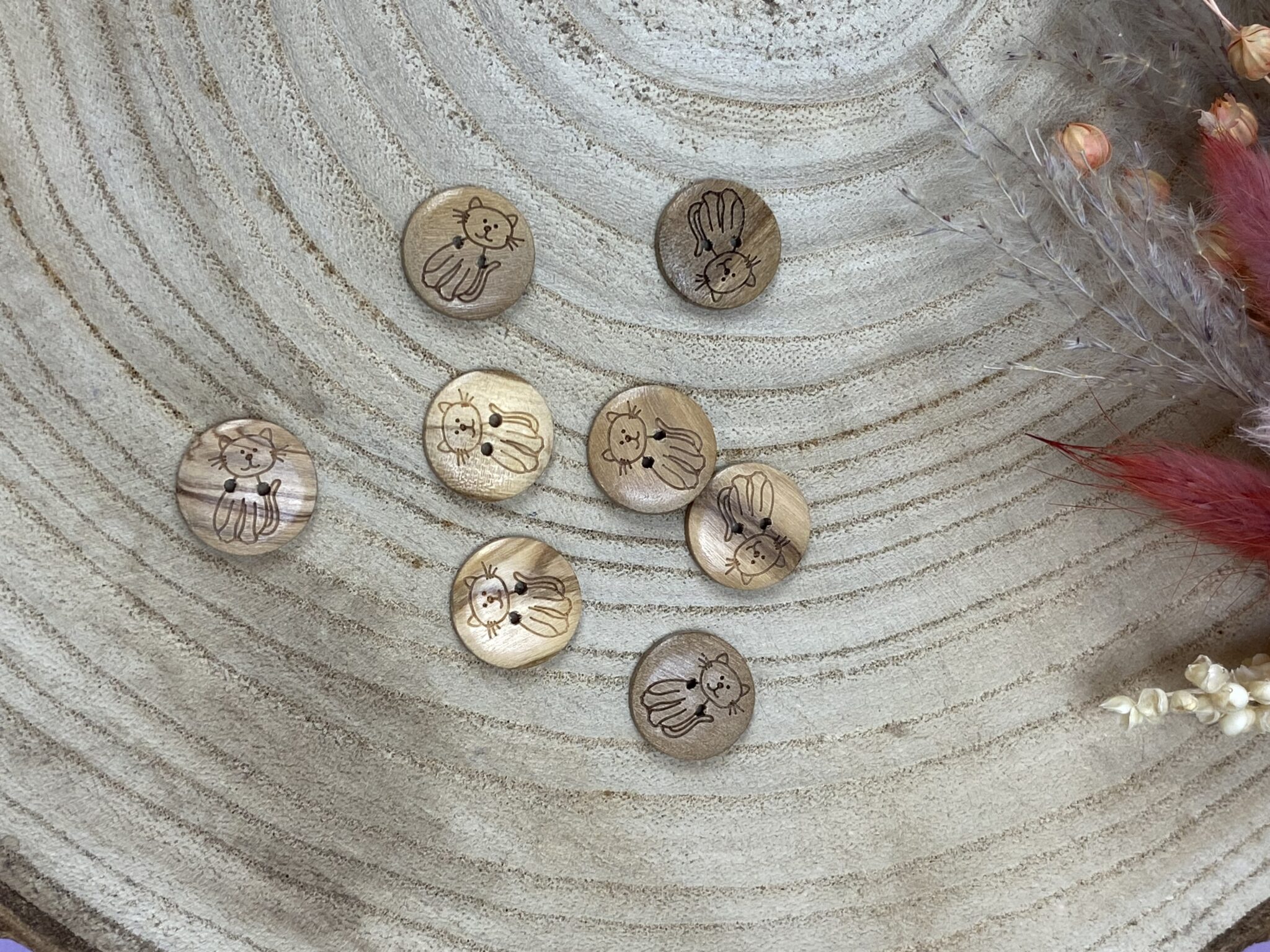 Echter Holzknopf 15 mm „Katze“