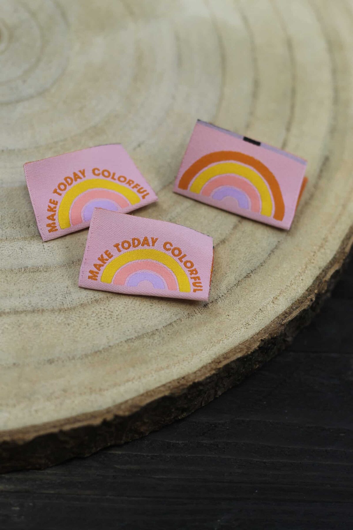 Drei unterschiedliche Webetiketten nach dem Design von Minkjas.