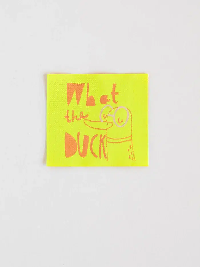 What the duck! Dieses Nähetikett zum Einnähen in deine selbstgenähte Kleidung spricht für sich — und für fluchende Enten. Das Etikett ist aus recyceltem Polyestergarn aus PET Flaschen gefertigt und ein kleines, leuchtendes Highlight an Eurer neuen Lieblingsklamotte!