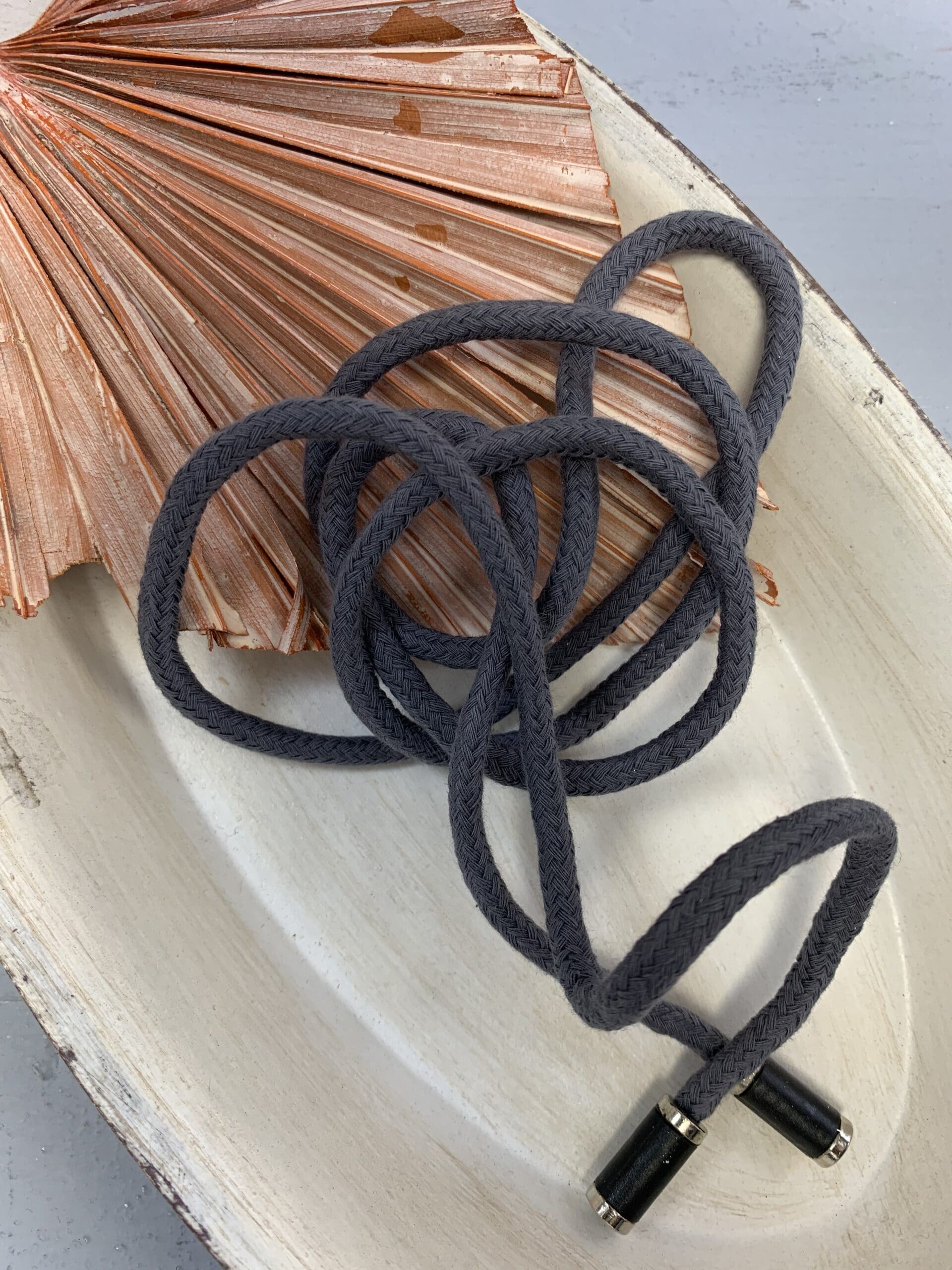 Hier findet ihr eine tolle Hoodiekordel mit Endstücken in schwarz/silber aus Baumwolle. Die Kordel hat einen Durchmesser von ca. 5mm.