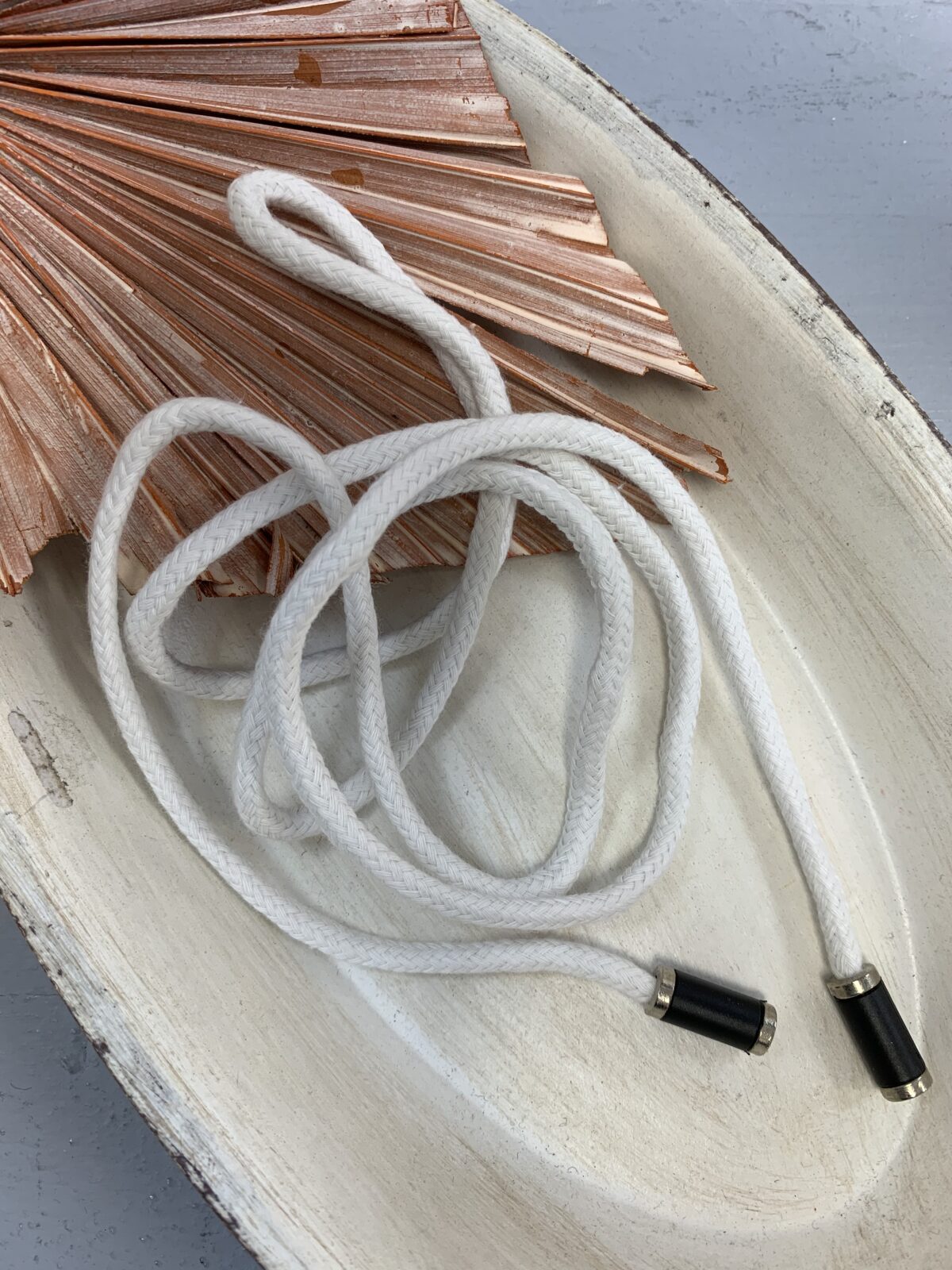 Hier findet ihr eine tolle Hoodiekordel mit Endstücken in schwarz/silber aus Baumwolle. Die Kordel hat einen Durchmesser von ca. 5mm.