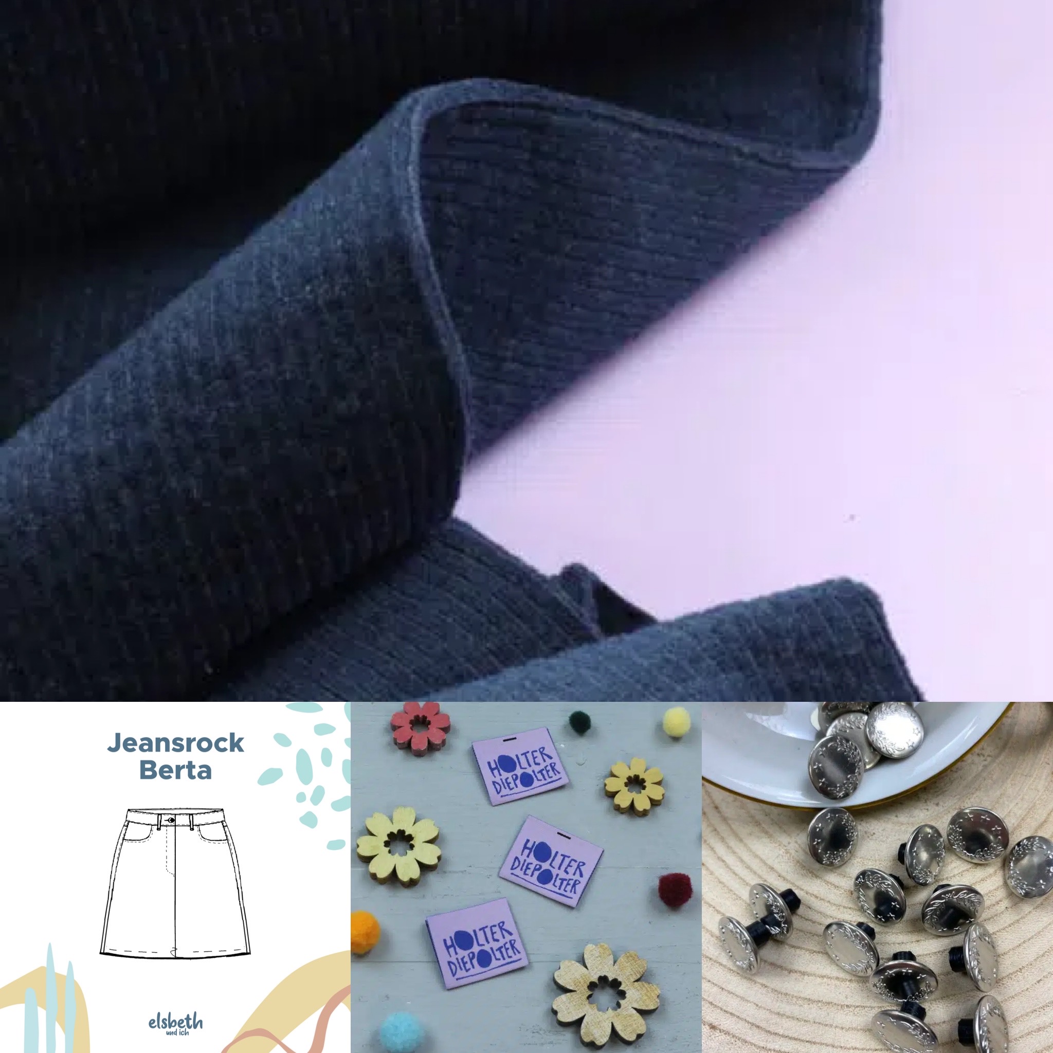 Mit dem Nähset Rock Berta nähst du dir deinen eigenen Rock – in drei verschiedenen Längen: 45 cm, 80 cm oder 90 cm. Ob aus klassischem Jeans, lässigem Cord oder edler Gabardine – dieses Set enthält alles, was du brauchst. Optional kannst du direkt das passende Schnittmuster mitbestellen.