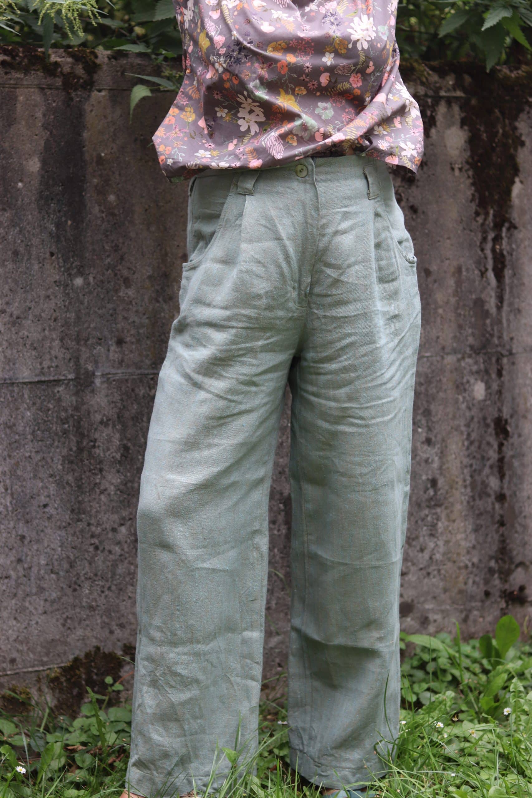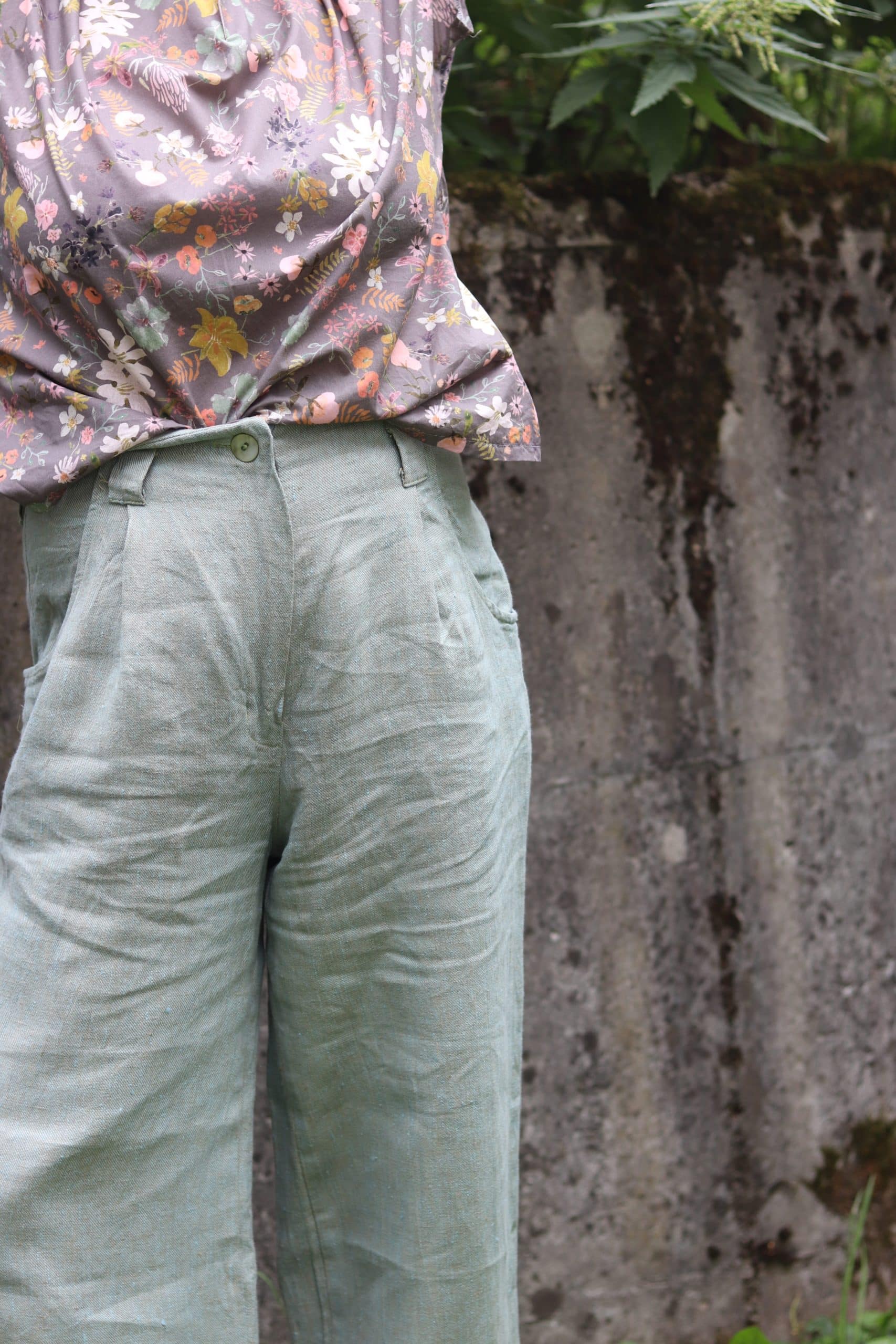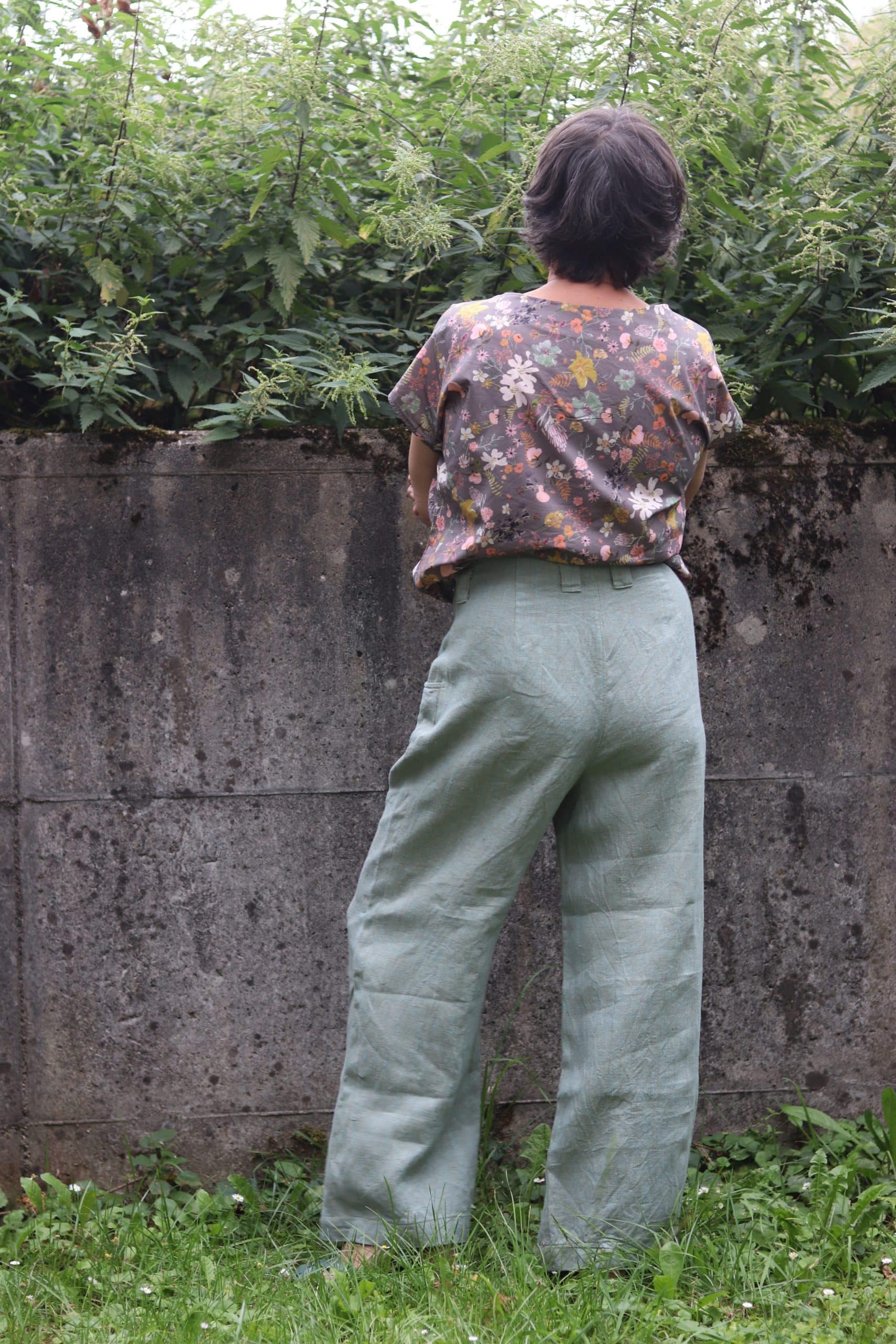 Die Hose „Taille“ sitzt in der Taille und hat vorne eine Kellerfalte. Sie wird mit Reißverschluss gearbeitet.